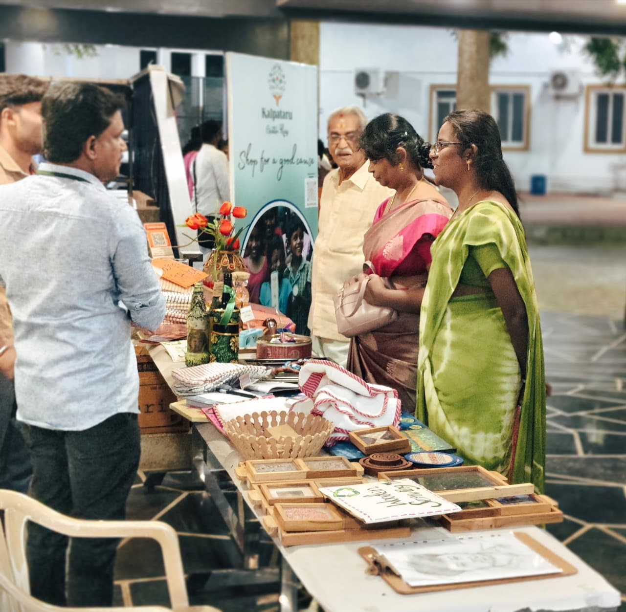 Kalpataru Trust organized a stall at Lakshmi Sundaram Hall to display creative reuse items, and eco-friendly upcycled items, promoting sustainability and responsible consumption.